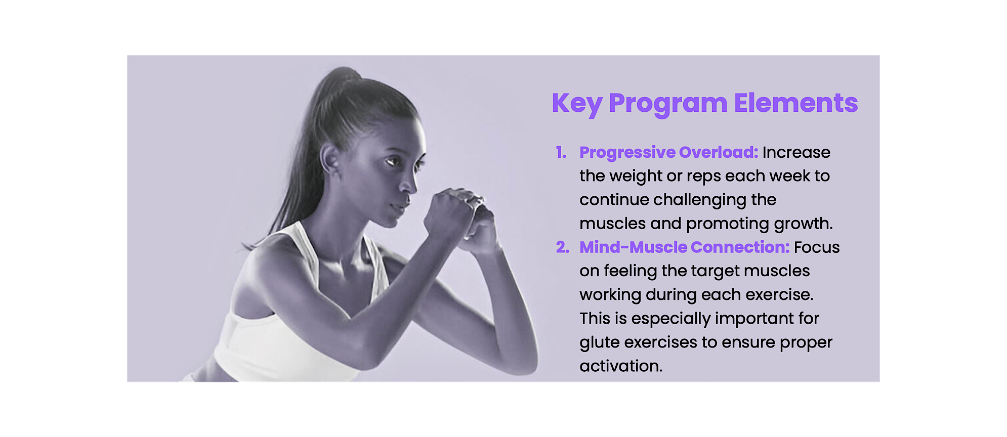 This 4-week program is designed to strengthen and sculpt the core and glutes, focusing on targeted exercises that build muscle, improve stability, and enhance overall body composition. The program consists of 4 training sessions per week, with each session focusing on either the core, glutes, or a combination of both.